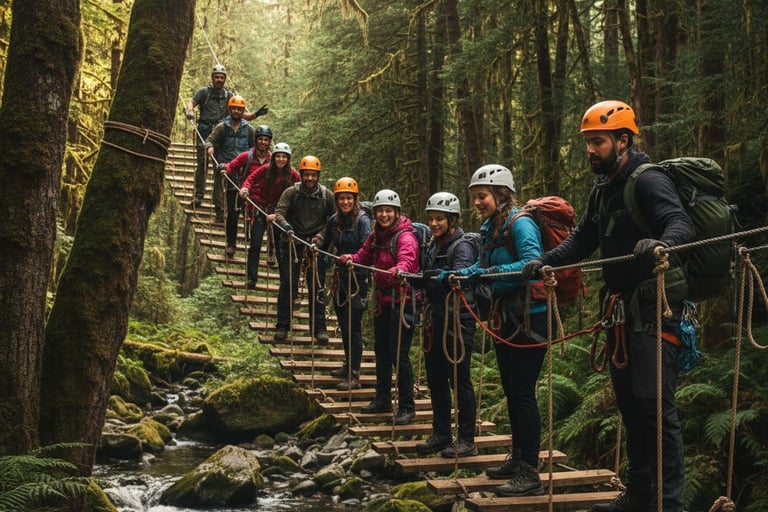Dependencia y Vulnerabilidad: El "líder" formal puede ser el más asustado en el puente, y la persona "silenciosa" puede ser la más hábil resolviendo el nudo. Esto rompe jerarquías y obliga a que las personas se vean y se valoren por sus habilidades intrínsecas en lugar de por su posición.