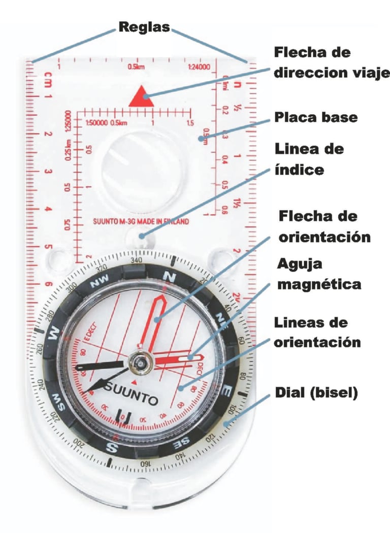 Antes de usar una brújula, es importante comprender sus partes: