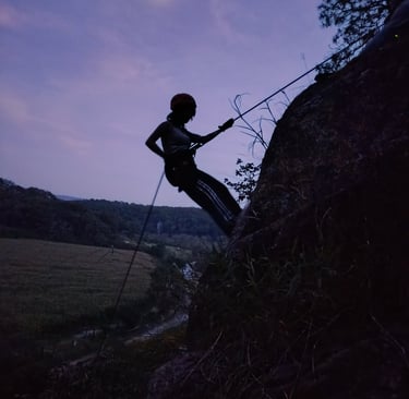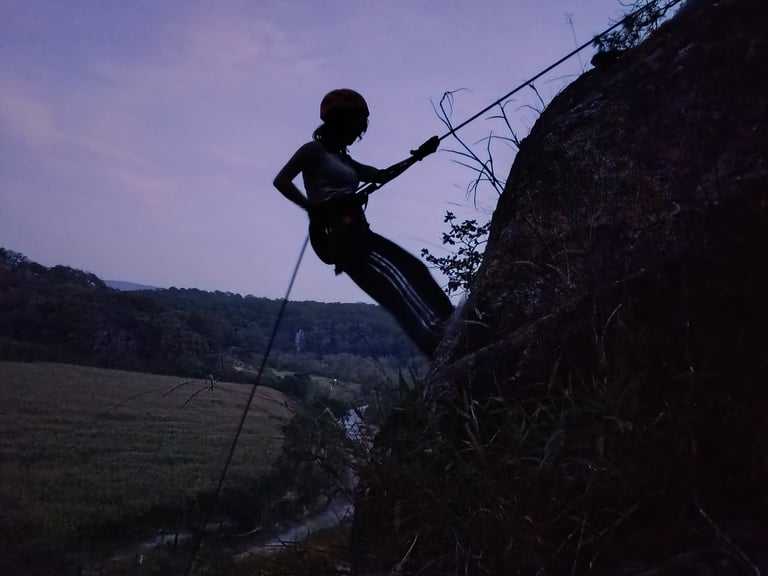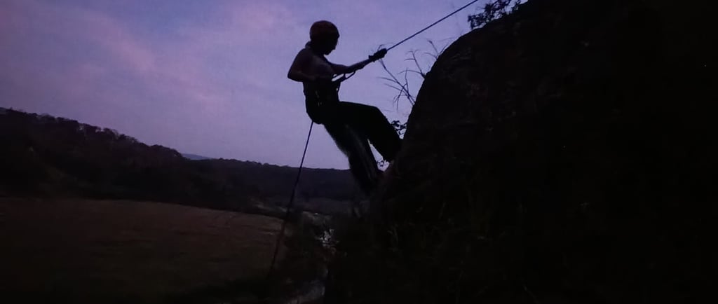 Práctica Diurna Obligatoria: Jamás hacemos un rappel nocturno si no lo han dominado primero de día. Deben hacerlo al menos 3 o 4 veces con luz. Sus manos necesitan "memoria muscular". Deben saber, sin ver, cómo se siente la cuerda al deslizarse, cómo frenar y cómo posicionar su cuerpo. El equipo deja de ser un objeto extraño y se convierte en una extensión de su cuerpo.