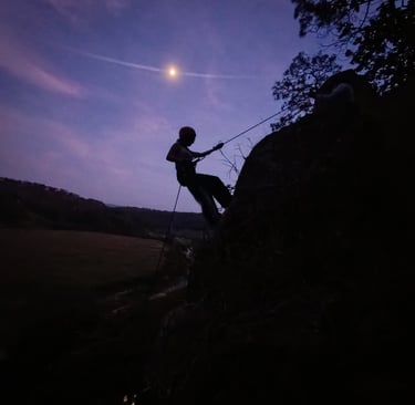 La pregunta ha sido recurrente, ¿Como logramos construir la confianza antes de llevar a los jóvenes a realizar un descenso bajo la luz de la luna?, y esto es de hecho la parte mas importante de nuestro trabajo. La confianza no se exige, se construye. Y en la oscuridad, se construye con ladrillos muy específicos y tangibles.
