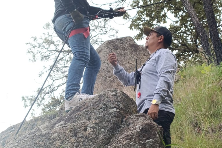 El "Belay" de Seguridad (El Freno de Mano): Siempre tengo un sistema de seguridad adicional (un "belay" o aseguramiento de respaldo) que controlo yo. Les explico: "Esta cuerda la controlo yo. Si por cualquier razón sueltas la tuya, te paralizas o te resbalas, yo te tengo. No puedes caer. Tu trabajo es bajar; el mío es ser tu freno de emergencia infalible". Saben que tienen el control, pero yo tengo el control final.